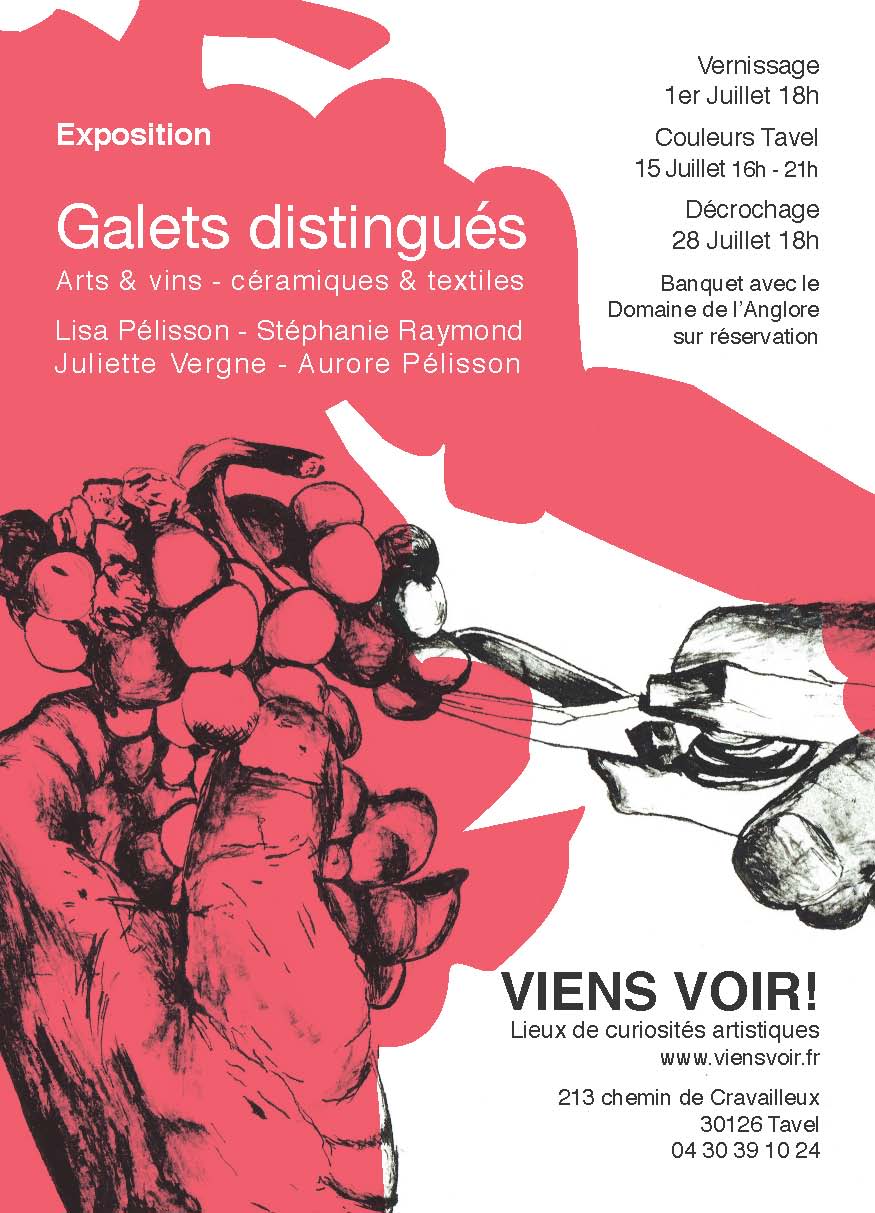 Nous sommes heureux de vous inviter au vernissage de l'éxposition entre arts & vins : GALETS DISTINGUÉS le samedi 1er Juillet, 18h à Viens Voir ! Lieu de curiosités artistiques à Tavel (30126). Artistes céramistes : Stéphanie Raymond, Lisa Pélisson Artistes textiles : Juliette Vergne, Aurore Pélisson ⁃ Ouverture pour Couleurs Tavel le 15 Juillet. ⁃… Lire la suite Vernissage samedi 1er juillet entre arts & vins – Galets distingués