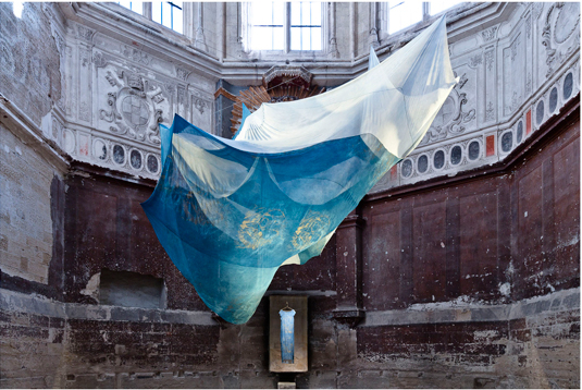 The Immaterial Installation located in the Célestins church, a place charged with energy and symbolism. The order of the Celestines was an order of meditation, contemplation, reflections on essential principles. After long moments of studying the sky, Immaterial talks about the organic relationship, the contact between air and skin, between the sacred sky and the psyche of man. How one influences the other and vice versa to form a single whole.